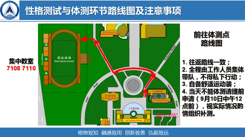 (3)体测环节请注意衣着宽松,穿运动鞋,做好准备活动,忌空腹、饱腹参与测试。测试过程中如发现身体不适,应及时报告,向现场医疗点求助。如因特殊情况无法参与测试,请于9月10日中午12点前以书面形式(辅导员签字)向LETOU国际米兰官网考务办(七号楼四楼7406B)申请缓考;