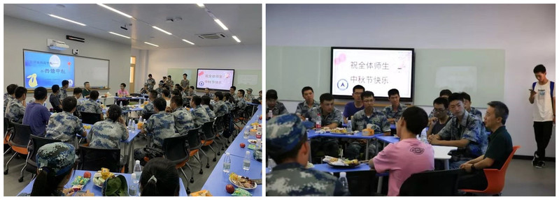 在师生共度中秋的最后环节,各班组织了欢庆中秋主题班会。班会形式十分多样,有的班级主持“破冰”,眼前是一张张羞涩的笑脸,耳边是一句句“初次见面,请多关照”;有的班级则更进一步地相知相悉,成了“共同进步的一家人”;有的班级组织了歌舞表演,热闹非凡;更有的班级邀请到了班主任和班导一起参与。24个班级,个个都把此次班会开展地有声有色,愉悦又温馨。