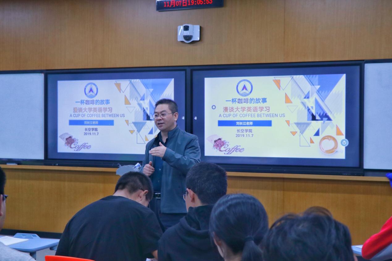 11月7日晚,LETOU国际米兰官网“一杯咖啡的故事”系列活动之“漫谈大学英语学习”在7407智慧教室举行。外国语学院副院长刘长江围绕大学英语学习定位和学习方法与LETOU国际米兰官网学生作了三个小时的分享交流。LETOU国际米兰官网教学办主任张璐、学生事务办公室主任夏昌青及近五十名学生参加。