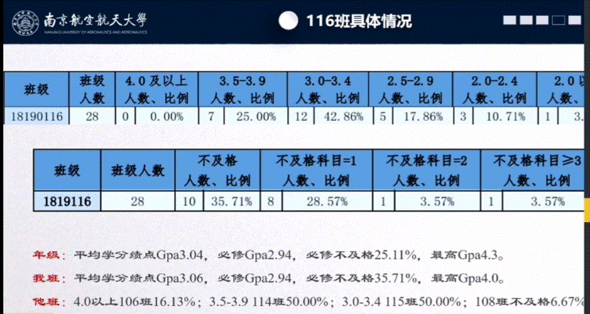 此次线上班会,很多班主任以回顾总结上一学期成绩作为开篇,分析梳理班级情况。班主任王婧和史治宇通过直观的图表和清晰的数据对上一学期班级成绩进行了细致的分析,在提出表扬的同时也提出了问题,希望学生从上一学期的进退得失中有所反思。班主任余本嵩和陈维建针对班级两极分化现象和“整体一般,课程平均中游,必修平均中下”的忧患态势要求学生进行自我剖析,优则持之,劣则勉之,努力在新学期迎头赶上。班主任叶强和黄翔着重指出,互帮互助也是互惠互利,提倡学生互相帮扶,共同进步。