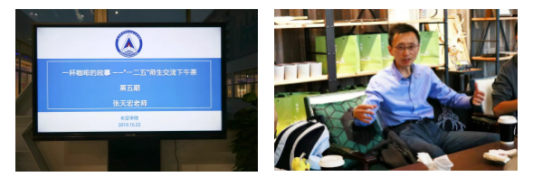 第五期的主讲老师是能源与动力学院副院长张天宏。张天宏老师与长空学子一同品味咖啡,亲切对话。在交流过程中,张天宏老师对学生怎样进行自我管理提出建议,解答了如何为专业分流做准备,分析了航空航天专业的就业前景,介绍了国内航空发动机领域重要的科研院所,一系列的问答将大学阶段到毕业后工作中的关键环节串联起来,让学生跟随张天宏老师预设了自我的发展路线。