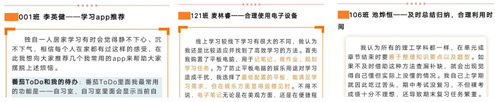 此外,我们也看到一些同学的行动榜样展示,李英健、池烨恒、麦林睿、潘开江等同学分享了自己的学习生活、课余生活、体育生活的好习惯、好作法、好风貌,同学们都可以去看一看,对比一下自己是否也做到了,当然我们还有很多同学做的也非常好,我这里面讲的只是其中的一些代表。如果我们的一些同学还没有形成很好的行为习惯,希望能够借这些榜样的力量好好分析一下原因,改进自己、完善自己,让优秀的追求成为一种内在的需求。