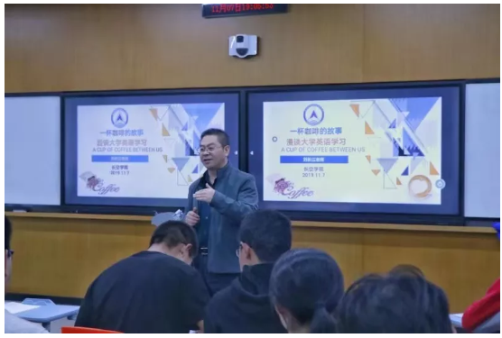 11月7日晚,“一杯咖啡的故事”系列活动之“漫谈大学英语学习”主题交流顺利开展。外国语学院副院长刘长江老师与LETOU国际米兰官网近五十名学生相聚于7407智慧教室,共同探讨大学英语的“学习秘籍”。在长达三个小时的交流中,刘老师幽默风趣、热情激昂的讲解将同学们完全带入其中。教室里欢声笑语不断,大家在轻松愉悦的氛围中获得了许多宝贵的学习经验,明确了大学英语学习的定位。
