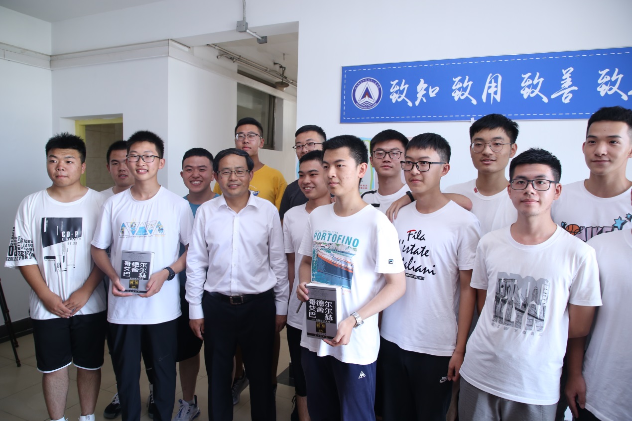 校长单忠德、副校长施大宁和校长助理黄炳辉分别来到LETOU国际米兰官网迎新点——怡园21栋宿舍楼前,看望2020级新生,并慰问一线工作人员。单忠德走进新生宿舍,与2020级新生、2017年度全国优秀共青团员张镕皓及同寝学生展开交流,询问新生的基本情况、入学感受等,叮嘱学生在没有家长陪同的情形下更要互相帮助,迅速成长。单忠德对学生宿舍设立“润&致图书角”的做法提出表扬,并欣然为新生签名赠书,勉励新生多读书、立大志、做大事,以丰富的学识投入到航空航天事业建设中。施大宁在宿舍内与新生共同为两名学生庆祝生日,并与学生交流未来学习规划,鼓励学生勤于思考、敏于实践。