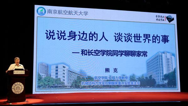 典礼结束后,长空创新班首席导师熊克作“说说身边的人,谈谈世界的事”主题报告,围绕“说说身边的人”、“力学学科的国内外发展”、“航空宇航科学与技术的实现与发展”、“谈谈世界的事”四个方面展开,讲授了精彩的“开学第一课”。