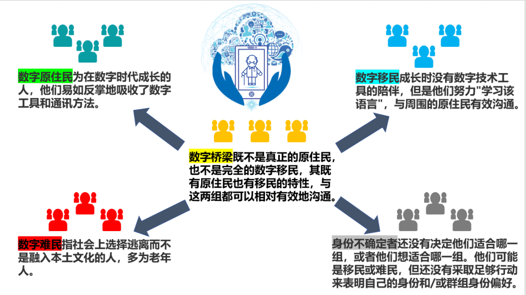 其实,“数字难民”在我们的日常生活中并不罕见,即使在如今似乎人手一部手机,无时无刻不联网的潮流中,仍然有相当一部分“落后”的群体对数字化生活并不敏感,或者说不适应,无论是主动还是被动,“数字难民”更关心身边的柴米油盐,更接受面对面的互动交流,而对于屏幕内的虚拟世界无所适从,当身边的人(尤其是晚辈)都接受甚至依赖于数字化生活方式之时,“数字原住民”与“数字难民”间的鸿沟似乎难以跨越。
