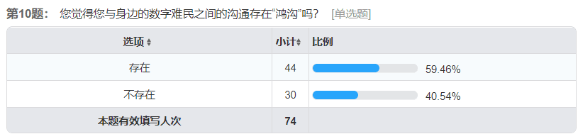 总体来说,当今社会对于“数字难民”的关注还有所缺失,且虽然有不少人能够注意到身边的数字难民,也能意识到数字难民与数字化社会之间的隔阂,却缺少相应的、易获取的手段协助数字难民融入数字化社会,这道代际鸿沟,一直存在。