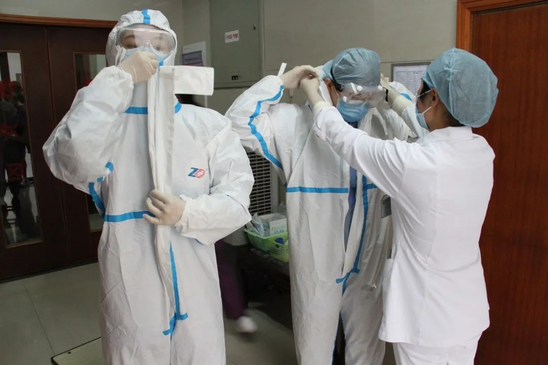 仅一次的穿脱我们就已经大汗淋漓,而医护人员们则要穿着密不透风的防护服连续工作六个小时,这种强度是我们难以想象的,看着他们的笑颜,我们内心的敬意油然而生。