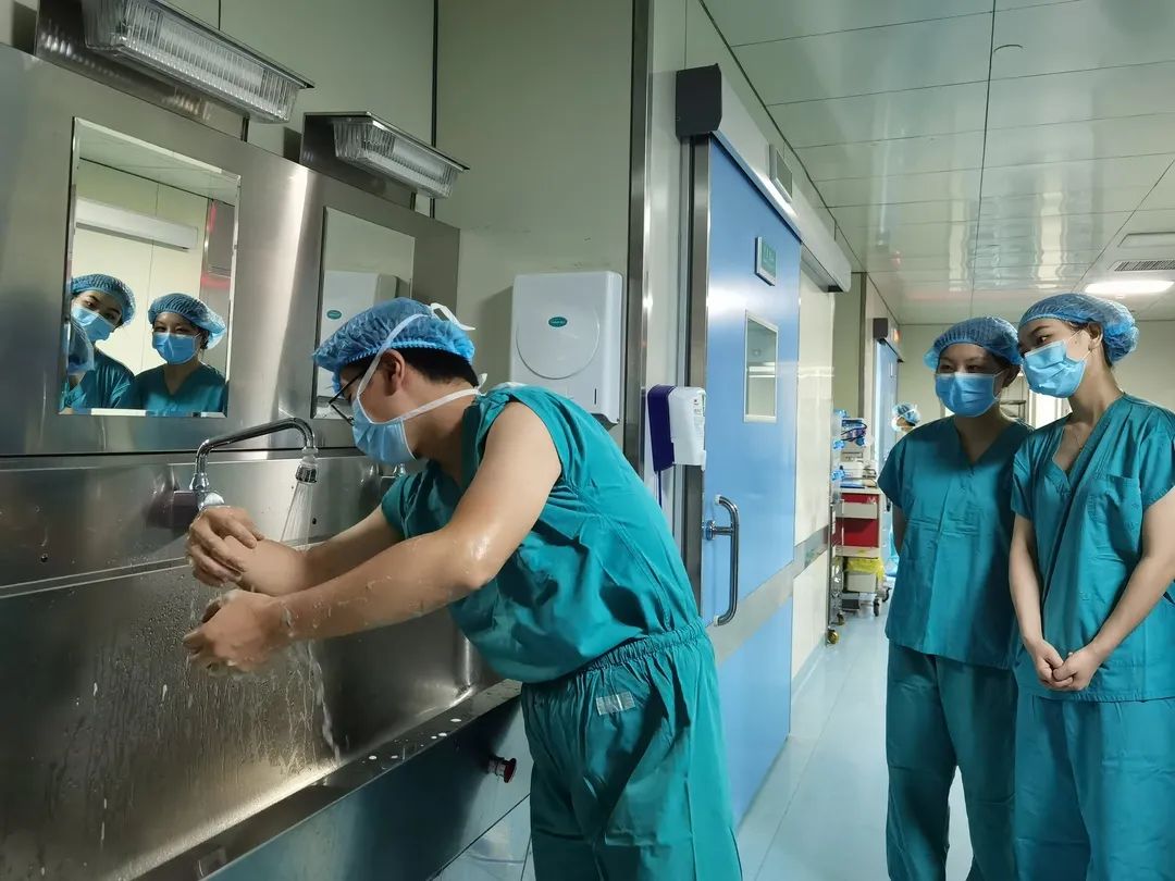 采访过后,我们深入医院了解了相关的医疗知识。在医生的带领下,我们穿着手术衣,参观了手术室,大致了解了手术流程并且学习了外科洗手;而后穿上白大褂参观了检验科、病理科和发热门诊。