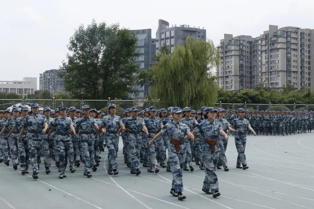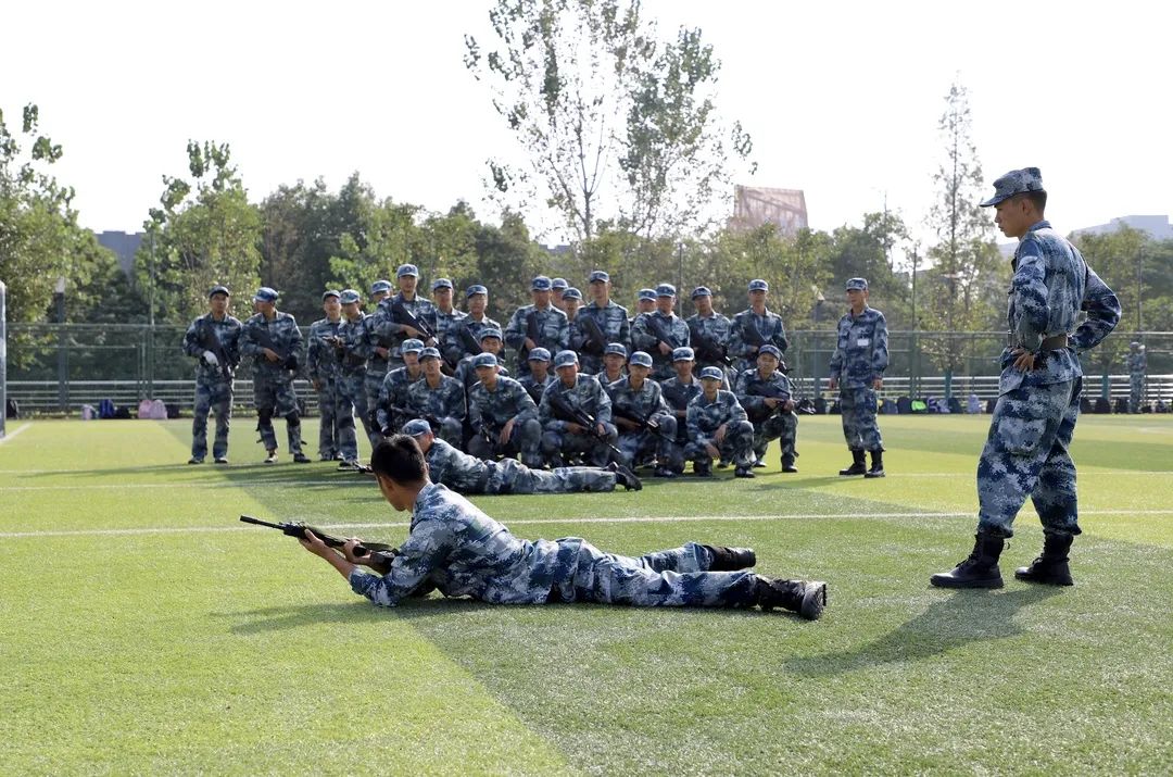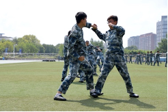 旭日初升,万里无云,新的一天开始,同学们早已跃跃欲试,在各自的方阵等候教官下达指令。随着教官的一声令下,他们目光坚定,直视前方;他们踢腿生风,健步如飞;他们雄姿勃发,气贯长虹;他们钢枪紧握,势不可挡。侧倒、后倒、搏击,格斗方阵在绿色与绿色碰撞声中展现长空人的刚毅;卧倒、越进、匍匐,战术方阵带着满身的淤青和伤痕却依旧眼神雪亮,坚定目视前方。