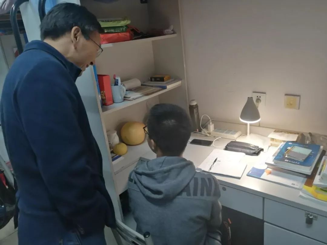 106班班主任陈文亮老师走进学生宿舍,在略带寒意的深秋夜晚为同学们送去关怀。他关注每位同学的学习与生活,“高数要好好学”,“在画工图吗?”“这个床挺高的,你们上下床要小心。”质朴的话语拉近了陈老师和同学们的距离。