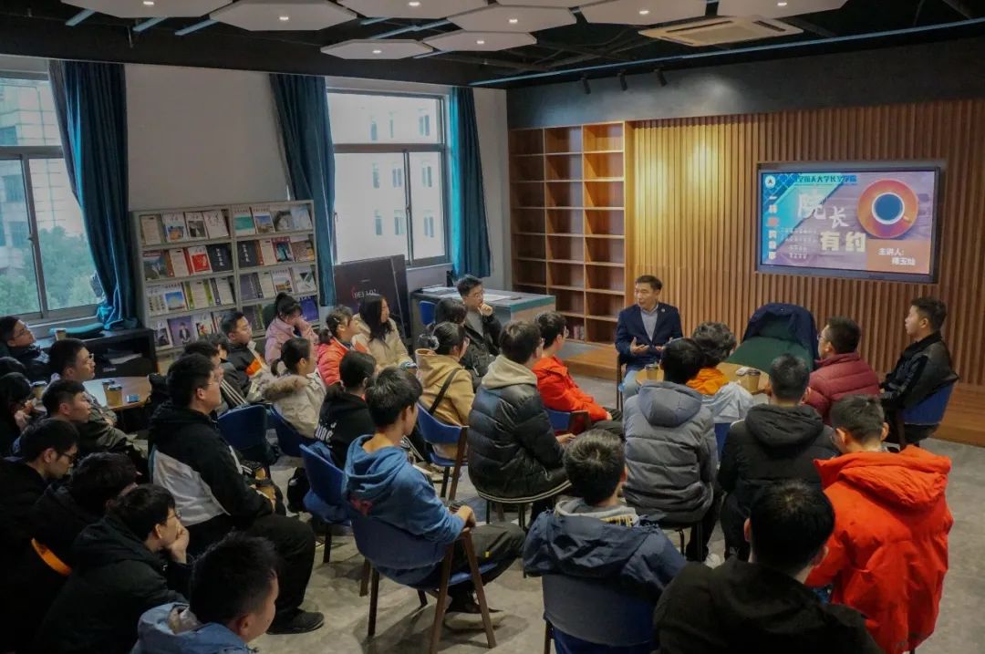交流伊始,傅院长热情地关心同学们的学习生活状态,询问同学们对机电学院的了解情况。他介绍到,机电学院的前身是航空机械工程系,拥有飞机制造工艺和发动机制造工艺的专业,2000年命名为机电学院。就此,傅院长鼓励大家多从身边的事例来探索制造的奥秘。而他风趣的谈吐、和蔼的态度也打开了同学们的话匣子,大家纷纷表达出对机电学院、对飞行器制造工程专业的好奇与兴趣。傅院长耐心解答了同学们的提问。