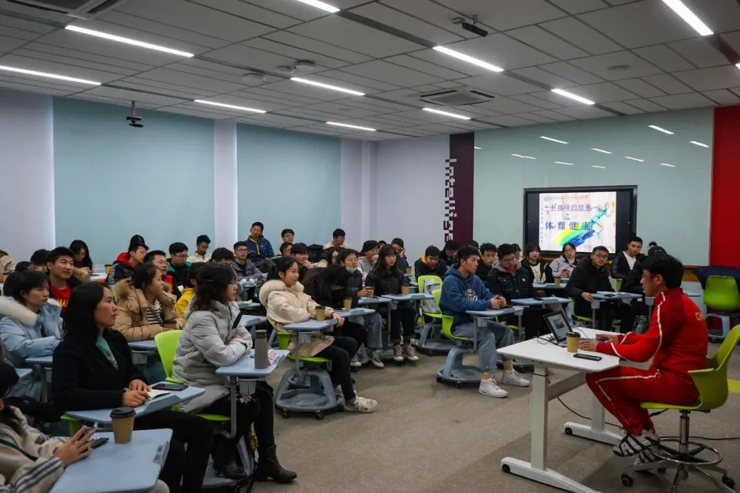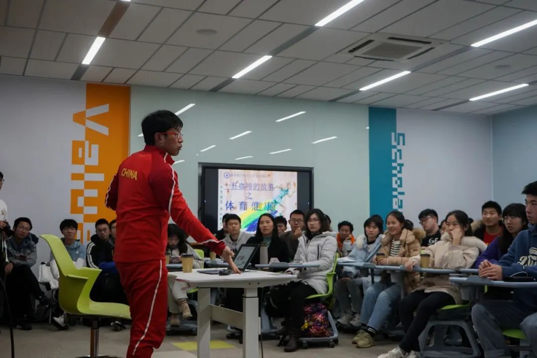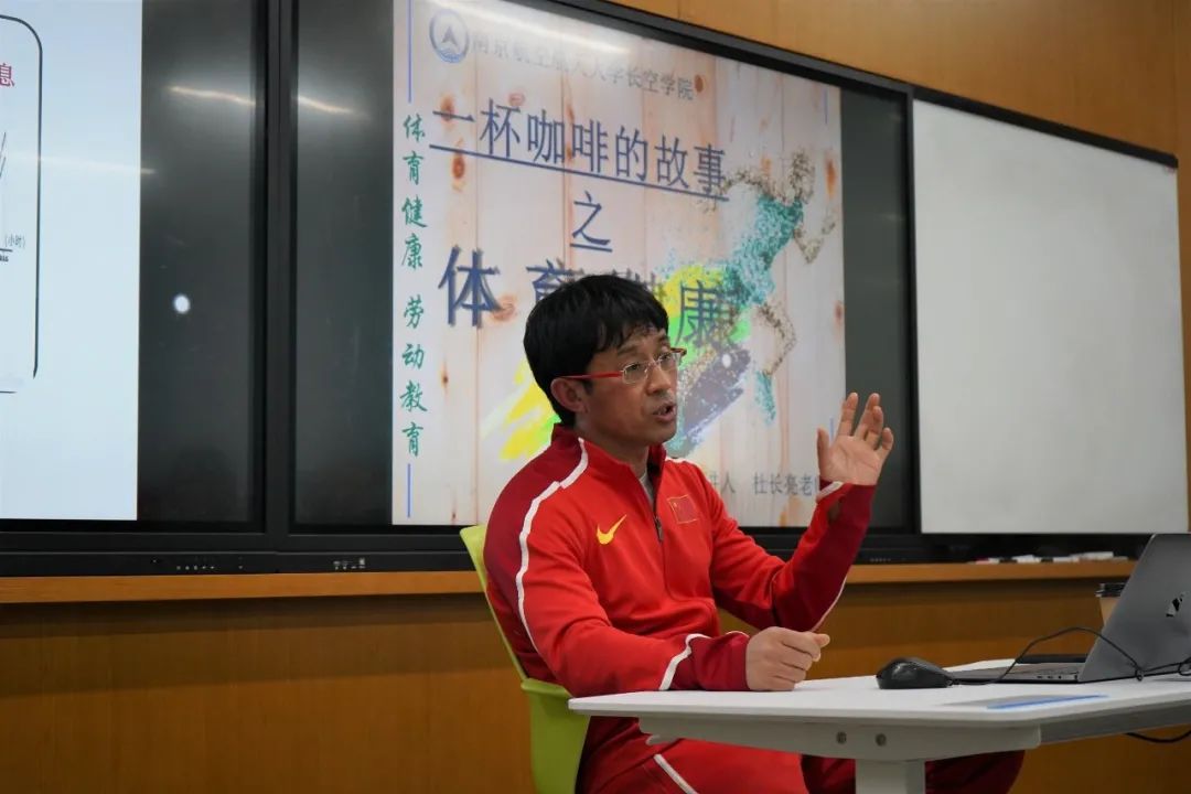 12月10日中午,我校体育部副主任、体育教育训练学博士杜长亮教授作客LETOU国际米兰官网“一杯咖啡的故事”,与长空学子围绕“大学生运动与健康”进行了一次愉快的交流,杜老师幽默的话语引得在场学生捧腹,强健帅气的身姿也令同学们羡慕不已。杜老师从体育思想、体育文化及科学锻炼三个方面与同学们分享了自己的观点。