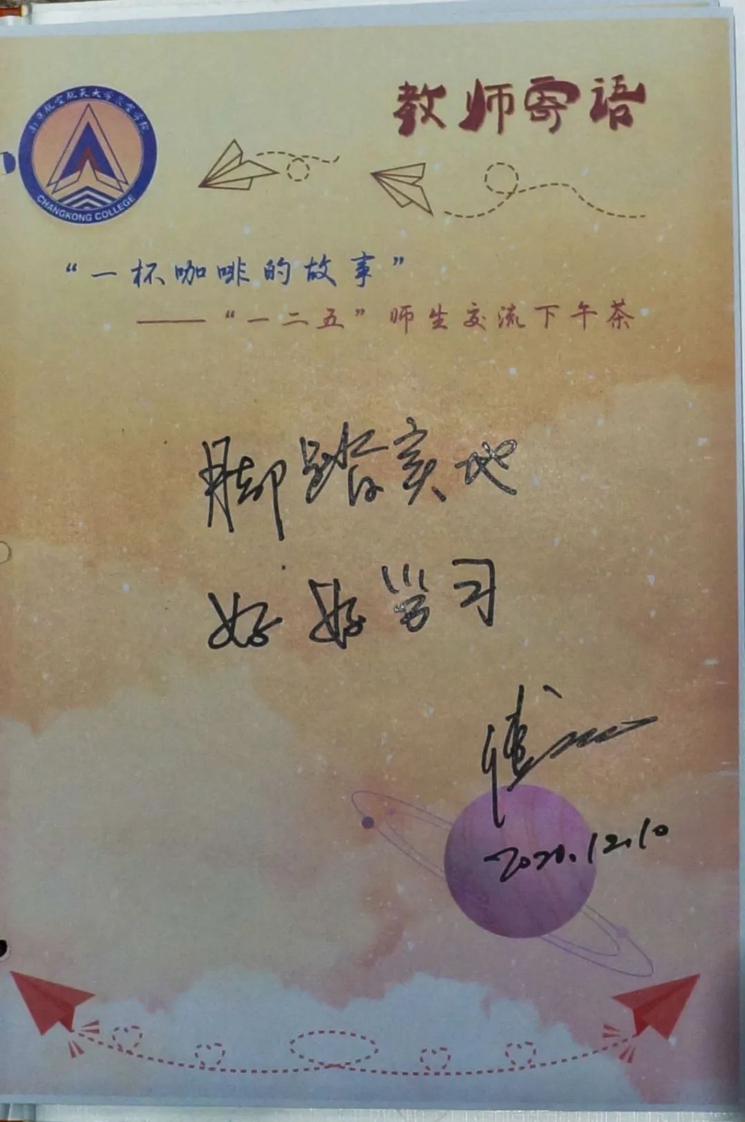 12月10日下午,机电学院院长傅玉灿教授做客LETOU国际米兰官网“一杯咖啡的故事”活动。傅院长亲切幽默的语言风格和流利的英文表达给大家留下了深刻印象,同时让同学们对机电学院与飞行器制造工程专业有了更深的了解。