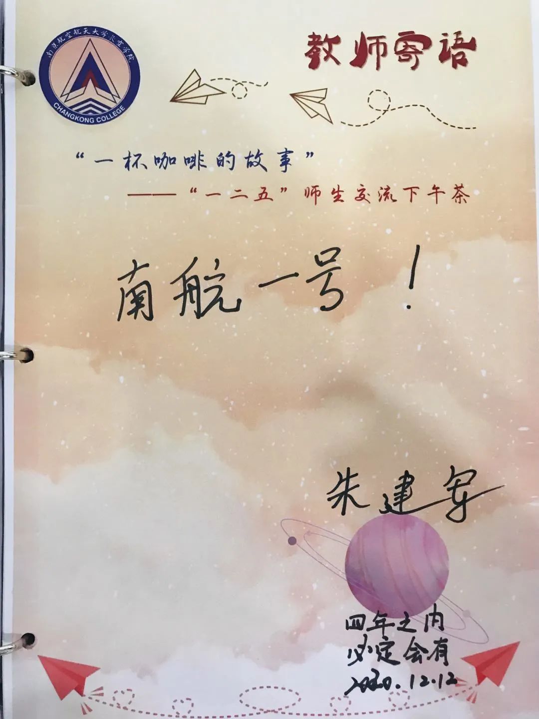 通过老师的分享,我深切感受到了南航学子在科研方面的巨大成就,也为我未来的科创道路指明了一条道路,还希望老师的“南航一号”的梦想能早日实现!