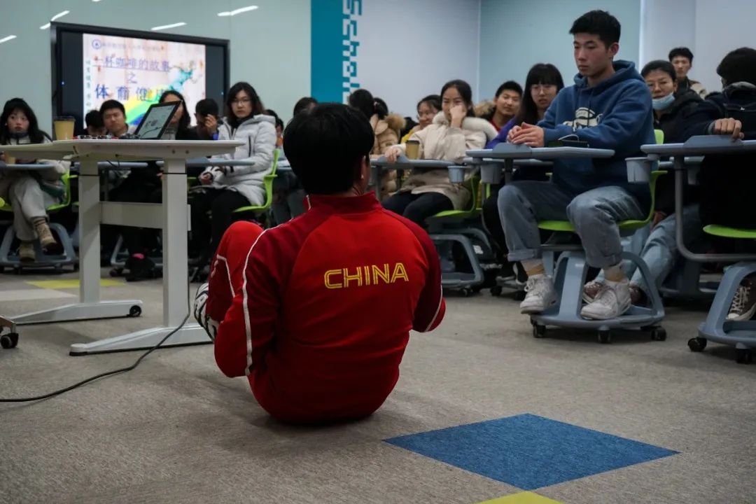 着眼当下大学生,杜老师提出,对同学们来说,科学运动很难坚持的主要原因是不够自律,若同学们能用心坚持,总能有所收获。杜老师建议同学们不要把运动局限在体育馆和健身房内,运动场、宿舍和教室随时可以找到简单的锻炼方法。针对科学的身体锻炼,杜老师给出了建议:训练之前首先需要对自身进行正确评估,其次要明确自己的目标。只有根据自己的身体状况和期望目标做出合理的安排,锻炼计划才更有执行力。杜老师鼓励大家,运动虽然不是万能的,却也能改变很多,健康的体魄往往来源于运动,而非医药。最后,杜老师与同学们开展了问答互动,杜老师还亲身示范如何科学锻炼。