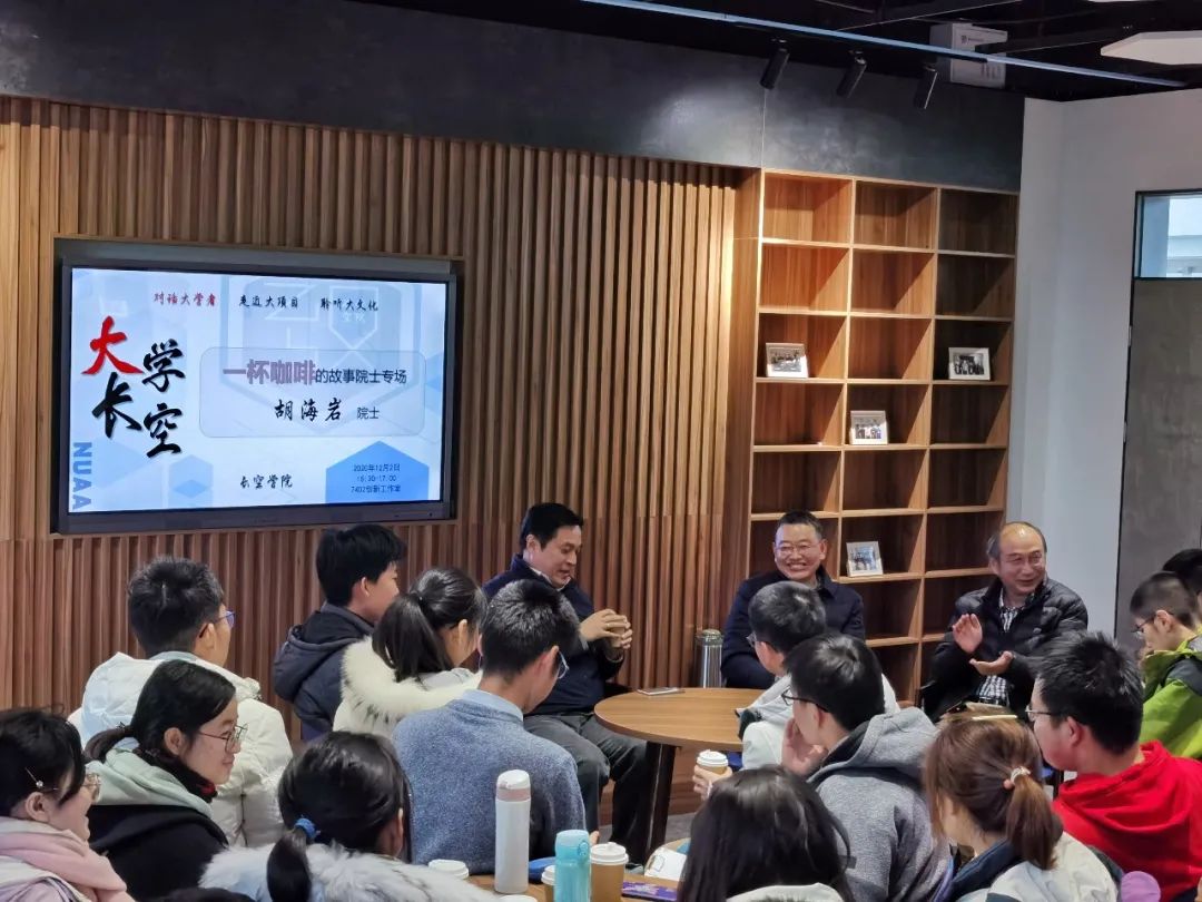 12月3日下午,中国科学院院士胡海岩做客LETOU国际米兰官网“大”学长空师生交流活动。胡院士平易近人,爽朗健谈,从回顾个人经历、大学教育目的与改革方向、专业发展、大学学习生活等方面与长空学子进行了一次有深度、有价值的交流。胡院士首先表达了对LETOU国际米兰官网先进的办学理念、优秀的学生素质以及坚持开展高质量的师生交流活动的赞赏,评价学院以高品位的设计审美和先进的育人理念,为学子们打造了一流的学习环境。胡院士特别提到了他与施校长的交流,他表示“一杯咖啡的故事”等系列活动的寓意令他感到“十分温馨”。