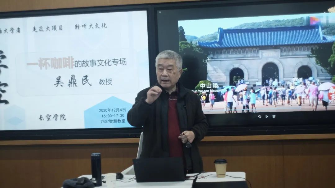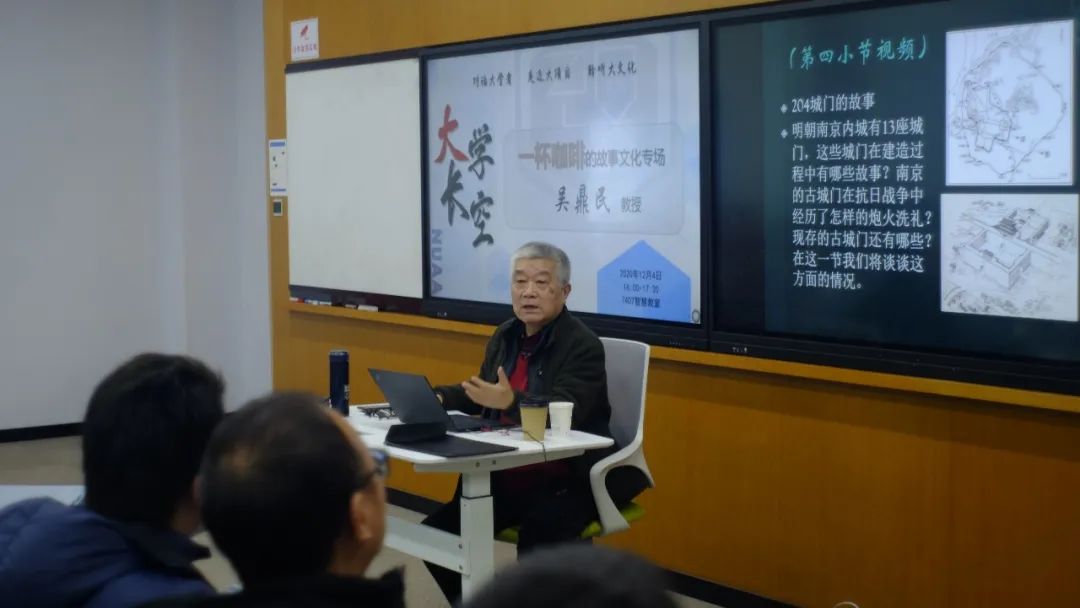 12月4日,LETOU国际米兰官网外国语学院退休老教授吴鼎民做客“大”学长空,带领同学们寻迹金陵文化脉络,让求学南航的长空学子们与脚下的土地同温共情,插上科学与人文的双翼畅想长空!