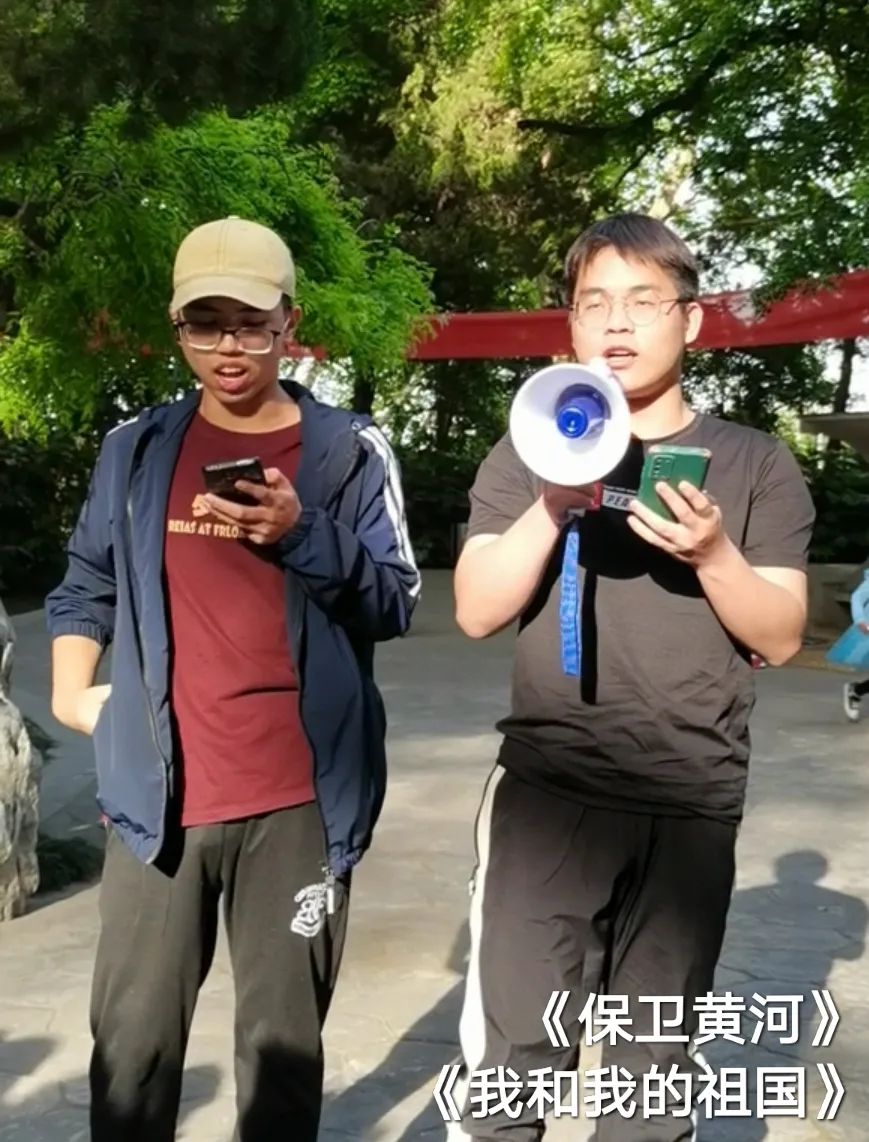 参观完博物馆后,我们来到了附近的菊花台公园进行团建,以加强同学们对党史学习的记忆。唱红歌,发扬民族精神一首首红歌谱写了一幅幅中华人民波澜壮阔的奋斗画卷,诉说了一段段激情昂扬的历史,展现华夏儿女坚韧不拔的民族精神。在菊花台上,由李嵘华,刘永平,王宇航带领同学们一起合唱了《保卫黄河》、《我和我的祖国》、《我的祖国》。