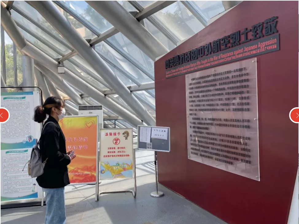 长达14年的殊死战斗中,数千名中国空军勇士,用宝青的青春和热血,谱写了可歌可泣的壮丽诗篇,为赢得抗战胜利付出了巨大的代价,留下了很多感人肺腑的抗日空战故事,至今让我们敬佩不已,无限缅怀。他们这种为国为民、不畏强暴、舍生取义、英勇抗争的精神正是我们所传承与弘扬的典范。走在纪念馆中,伫立于各类资料、照片之前,同学们都沉浸在当时的场景中,寻溯红色记忆,缅怀先烈祭忠魂。
