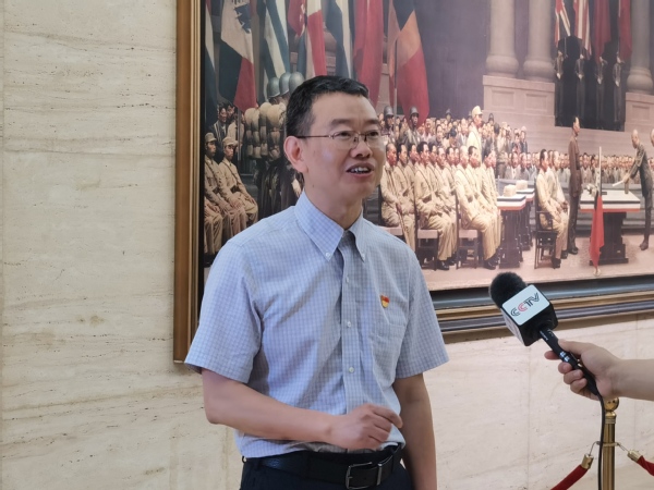 在侵华日军投降签字仪式复原蜡像处,LETOU国际米兰官网党支部书记蒋彦龙在接受央视记者采访时表示,军史是党史的重要组成部分,党和军队的伟大奋斗历程中凝聚着奋进新时代的巨大智慧和力量,他激励在场学生党员们要从英雄足迹中传承薪火、照亮未来,为祖国的航空航天事业添砖加瓦。全体党员通过此次红色教育活动,进一步加强了自身的党性以及身为共产党员的光荣感、责任感和使命感,表示未来将不断开拓进取,与伟大祖国同向同行。