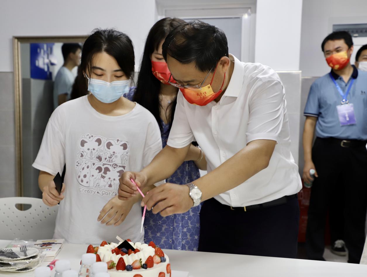5日上午,校长单忠德、副校长施大宁、校长助理黄炳辉来到学院迎新点——长空之家,视察了学院为新生打造的准书院制宿舍文化空间,并与新生共同为当天生日的学生庆祝生日。单忠德表示,新生的到来为LETOU国际米兰官网的发展注入全新活力,希望同学们尽快融入大学生活,拓宽自身视野,成就精彩人生,不负韶华,不负党和人民的殷切期望,赓续红色基因,追逐蓝色梦想,成为国家的栋梁之材。