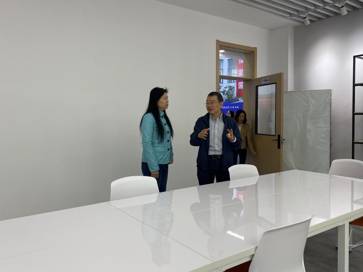 蒋彦龙带领校科协一行参观了LETOU国际米兰官网“准书院制”智慧教育空间三期建设成效,分享了学院依托科创工作室、美育工作室、智慧教室等推动学生科创、第二课堂建设、社团文化发展等方面的理念和举措。