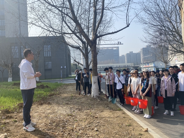 活动伊始,学院邀请园林专家为同学们讲解了挖坑、回填、栽植、覆土等种植技能和劳动工具的使用方法。随后,张林副院长进行了动员,他指出,学院贯彻落实全国教育大会精神,逐步构建德智体美劳“五育”并举的教育体系,将劳育与立德、增智、强体、育美相融合, “以劳树德”、“以劳增智”、“以劳强体”、“以劳育美”,他希望同学们不负春光,亲近自然,通过植树活动,牢固树立劳动最光荣的观念和人人爱绿植绿护绿的文明风尚。