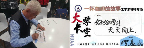 活动结束时,宣益民与同学们合影留念。他还亲笔给同学们留下了寄语:“好好学习,天天向上。”本次活动是LETOU国际米兰官网新学期首场“一杯咖啡的故事”师生交流活动,同时也是知名教授与青年学生分享成长经历、共话科学精神和人文素养的校园文化品牌。今后,LETOU国际米兰官网将继续邀请各领域的知名教授做客“一杯咖啡的故事”,助力长空学子成长成才。