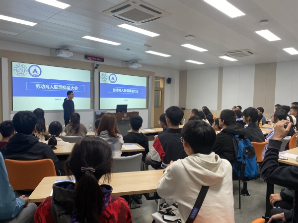 10月8日晚上,LETOU国际米兰官网于7109智慧教室举行劳动公开课暨劳动育人联盟换届大会。LETOU国际米兰官网副院长张林、党政办主任付亮、团委书记陶然雁及各年级辅导员参加了此次公开课。会议由付亮主持。