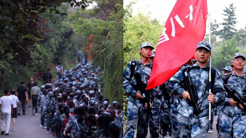 911凌晨,十公里拉练伴着星光拉开帷幕,长空学院的“新兵们”背上行囊,踏着矫健的步伐,宛如一条长龙般穿梭在屏翠山中。虽然汗水早已浸透衣裳,但每一同学都尽自己最大的努力跟上队伍,绝不掉队。