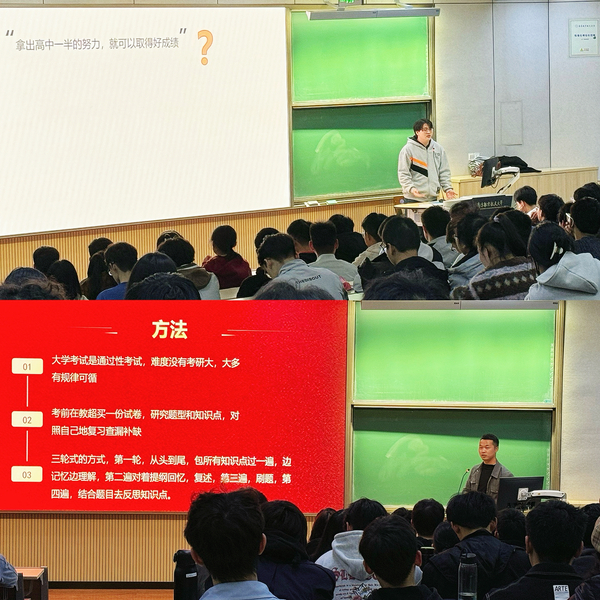 最后,为充分发挥榜样引领作用,邀请了2021级航空航天类闫自豪、李彦博等优秀学长与长空学子进行学习经验交流分享。他们从自身出发,讲述了自己的学习经验和科创经历,建议大家注重钻研思考和日常积累,找到适合自己的学习方法。
