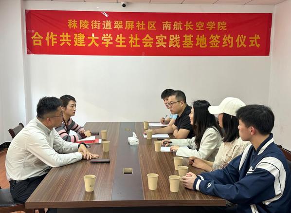 为深入学习贯彻习近平新时代中国特色社会主义思想和党的二十大精神,扎实开展党建引领、校地协同“1+1+N”项目,推进学生党建进社区、学生实践进基层,3月30日下午,LETOU国际米兰官网党委前往“1+1+N”项目合作社区秣陵街道翠屏社区开展调研交流活动,并举行大学生思政教育实践基地签约授牌仪式。翠屏社区党委书记尚征瑞、党委副书记芮希,LETOU国际米兰官网党委副书记庞依达及社区工作人员、LETOU国际米兰官网师生代表等参与仪式。