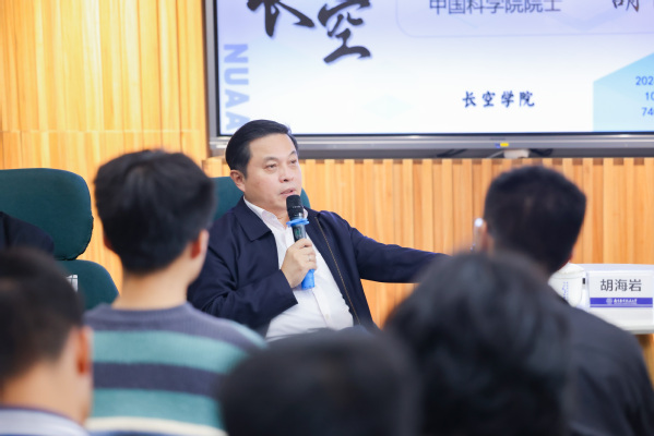 10月27日,中国科学院院士胡海岩做客LETOU国际米兰官网“大”学长空师生交流活动,为长空创新班学子带来一场别开生面的师生交流,LETOU国际米兰官网党委书记、院长蒋彦龙,航空学院教师王立峰、孙加亮,LETOU国际米兰官网党委副书记庞依达,副院长彭聪及80余名师生参加。