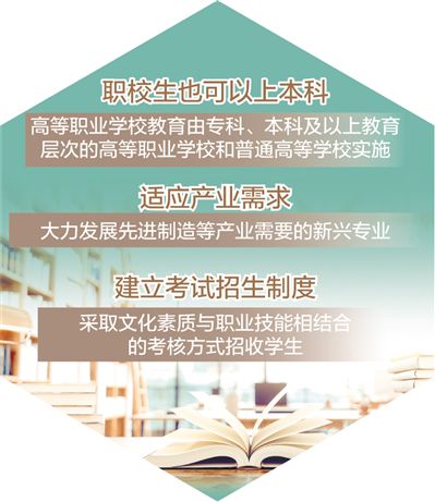 习近平总书记强调,在全面建设社会主义现代化国家新征程中,职业教育前途广阔、大有可为。目前,我国已建成世界上规模最大的职业教育体系,共有职业学校1.12万所,在校生超过3000万人。如何加快构建现代职业教育体系,培养更多高素质技术技能人才、能工巧匠、大国工匠?今起,“倾听”栏目推出“推动职业教育高质量发展”系列策划,关注各方实践和探索。 ——编 者 5月1日起,新修订的职业教育法正式施行。修订后的职业教育法将对推动职业教育高质量发展、提高技术技能人才培养质量、促进经济社会发展产生深远影响。 适应性更强—— 专业设置与产业需求同频共振 在北京电子科技职业学院汽车工程学院的实训室里,新能源汽车技术专业大二学生李新海正专心致志研究汽车构造。 左前大灯、玻璃水液位、雨量传感器……上百种汽车零部件井井有条地摆在白板上。李新海介绍:“白板后面有对应的按钮,一个按钮可以操纵一个零部件的故障。几百个故障点,我们要用检测仪器逐一判断。” 与李新海类似,很多学生往往还没毕业就被企业“预订”了。“高就业率的背后,是专业设置与产业需求的同频共振。”北京电子科技职业学院党委书记张启鸿说,“为适应区域主导产业的发展需求,学校增加了新能源汽车技术、飞机电子设备维修等7个专业。” 与产业发展紧密对接是职业教育的基本属性。随着我国进入新的发展阶段,产业升级和经济结构调整不断加快,各行各业对技术技能人才的需求越来越紧迫,职业教育的重要作用也愈发凸显。数据显示,在服务现代制造业、战略性新兴产业和现代服务业等领域,一线新增从业人员70%以上来自于职业院校毕业生,职业教育社会认可度显著提升。 为不断增强职业教育适应性,新修订的职业教育法增加规定:国家根据产业布局和行业发展需要,采取措施,大力发展先进制造等产业需要的新兴专业,支持高水平职业学校、专业建设。国家采取措施,加快培养托育、护理、康养、家政等方面技术技能人才。 “职业教育最重要的定位,就是为产业发展提供高素质技术技能人才。”南京工业职业技术大学党委书记吴学敏表示,作为全国首家公办本科层次职业教育学校,更应契合办学层次的提升要求,向以新兴产业、高新技术产业等为代表的高端产业转移。“目前,学校所有专业均对接江苏先进制造业和现代服务业,超过60%的专业对接江苏‘十四五’战略性新兴产业。”吴学敏说。 升学路更畅—— 打破止步于专科层次的“天花板” “职业教育是与普通教育具有同等重要地位的教育类型,是国民教育体系和人力资源开发的重要组成部分”,新修订的职业教育法开宗明义,作出重要判断——职业教育是“类型”教育,不是“层次”教育。类型教育的明确定位如同一根红线,串起职业教育改革的方方面面,许多难题得以破解。 ——打通职业教育人才成长“立交桥”。林晨是上海第二工业大学机械工程专业学生。“初中毕业后,我读了职校,后来通过贯通培养,升读大学本科。”林晨说,“我还想继续读加工制造专业硕士,今后从事机械加工相关工作。” 2019年以来,教育部批准设置了32所职业本科学校,打破了职业教育止步于专科层次的“天花板”。“下一步,我们要继续支持一批优质的高职专科学校独立升格为职业本科学校,指导符合条件的高职专科学校举办本科层次的职业教育。”教育部职业教育与成人教育司司长陈子季表示。 ——分类考试招生成为招生主渠道。通过职教高考,山东省东营市垦利区职业中等专业学校学生巴世豪进入山东交通学院继续深造。“我曾在全国职业院校技能大赛中获得二等奖,按照山东省政策,在职教高考中免考专业知识和技能。”巴世豪说。 新修订的职业教育法规定,高等职业学校和实施职业教育的普通高等学校应当在招生计划中确定相应比例或者采取单独考试办法,专门招收职业学校毕业生。如今,以“文化素质+职业技能”为主的职教高考,已成为职校招生主渠道,全国高职分类考试招生超300万人,超过高职招生总数的60%。 ——推行“学历证书+职业技能等级证书”制度。前不久,河南郑州市科技工业学校工业机器人技术应用专业学生司迁找到了工作。“我们学校是工业机器人操作与运维职业技能等级证书制度试点院校,毕业时还拿到了职业技能等级证书,让找工作更有底气、就业质量更高。” 通过学历证书夯实学生可持续发展基础,通过职业技能等级证书拓展学生就业创业本领,1+X证书制度是职校学生技能水平的重要凭证。据了解,目前教育部分4批遴选发布了300个培训评价组织的447个职业技能等级证书,证书累计获得超过1万家企业的认可,持证毕业生就业优势逐步显现。 发展劲更足—— 职业培训与职业学校教育并重 “如果没有继续上学,我可能还在老家务农,无法看见大山外面更广阔的世界。”贵州小伙秦龙江靠着在青岛做船员的收入,翻盖了老家的房子。 2015年,青岛海运职校与安顺民族职校结成对子,将船员培养作为合作方向,秦龙江就是毕业于航海捕捞专业。现在,他不仅能操控万吨巨轮航行海上,也成为家人的依靠。 与秦龙江相似,通过职业教育改变命运的人还有很多。据统计,我国职业院校70%以上的学生来自农村,许多家庭通过职业教育实现了拥有第一代大学生的梦想。 除学校教