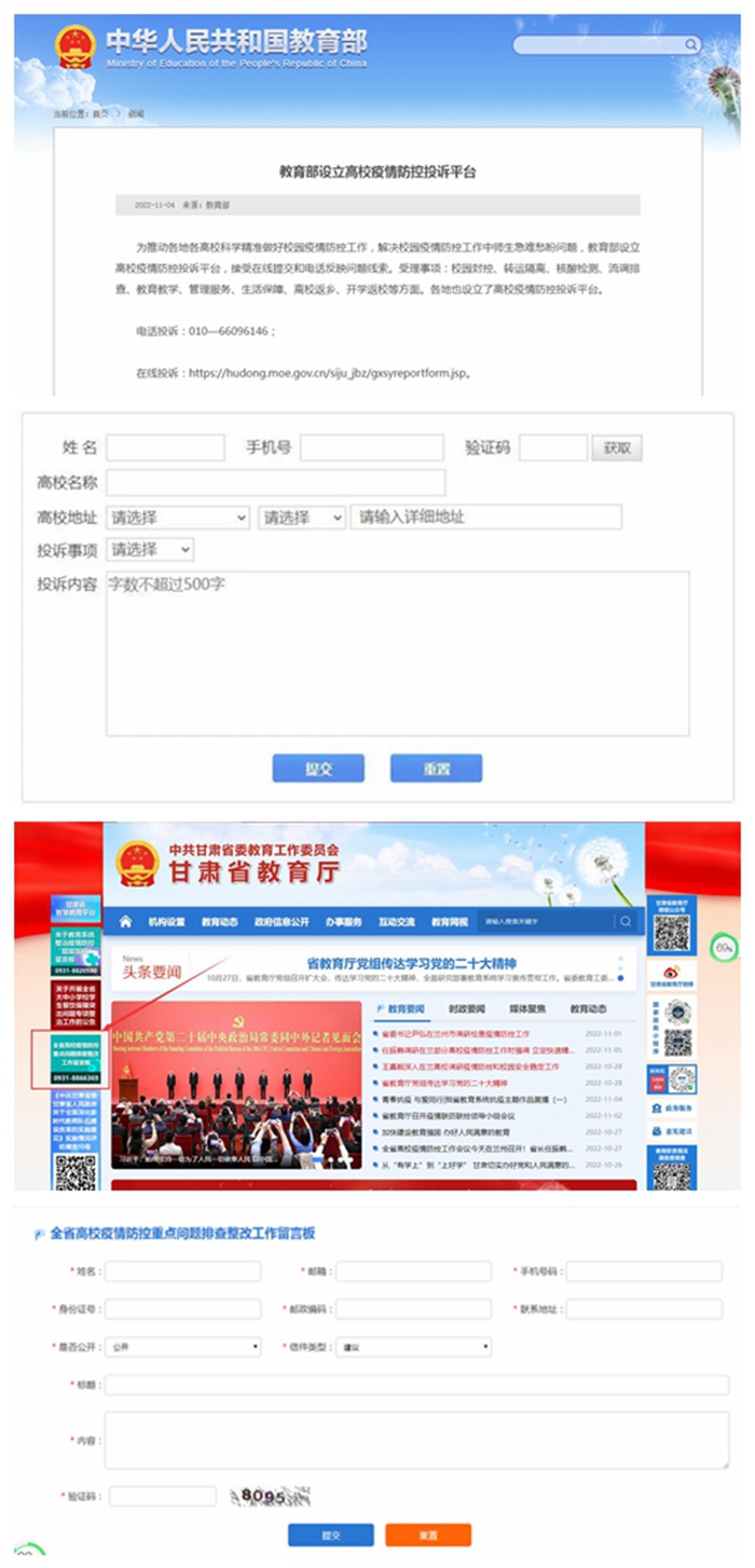教育部、省教育厅分别设立高校疫情防控投诉平台