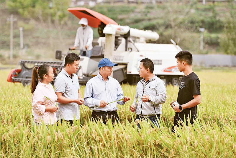 教育部党组通过政治巡视推动直属高校党委扛牢政治责任、强化使命担当。图为2021年10月8日,南京农业大学师生在贵州省黔东南苗族侗族自治州麻江县种植示范基地。该基地是在南京农业大学帮助下建成的,培育出优质稻种“宁香粳9号”。(教育部供图)